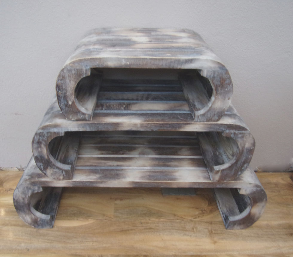 Rustic Nest of 3 Stacking Tables Shabby Chic