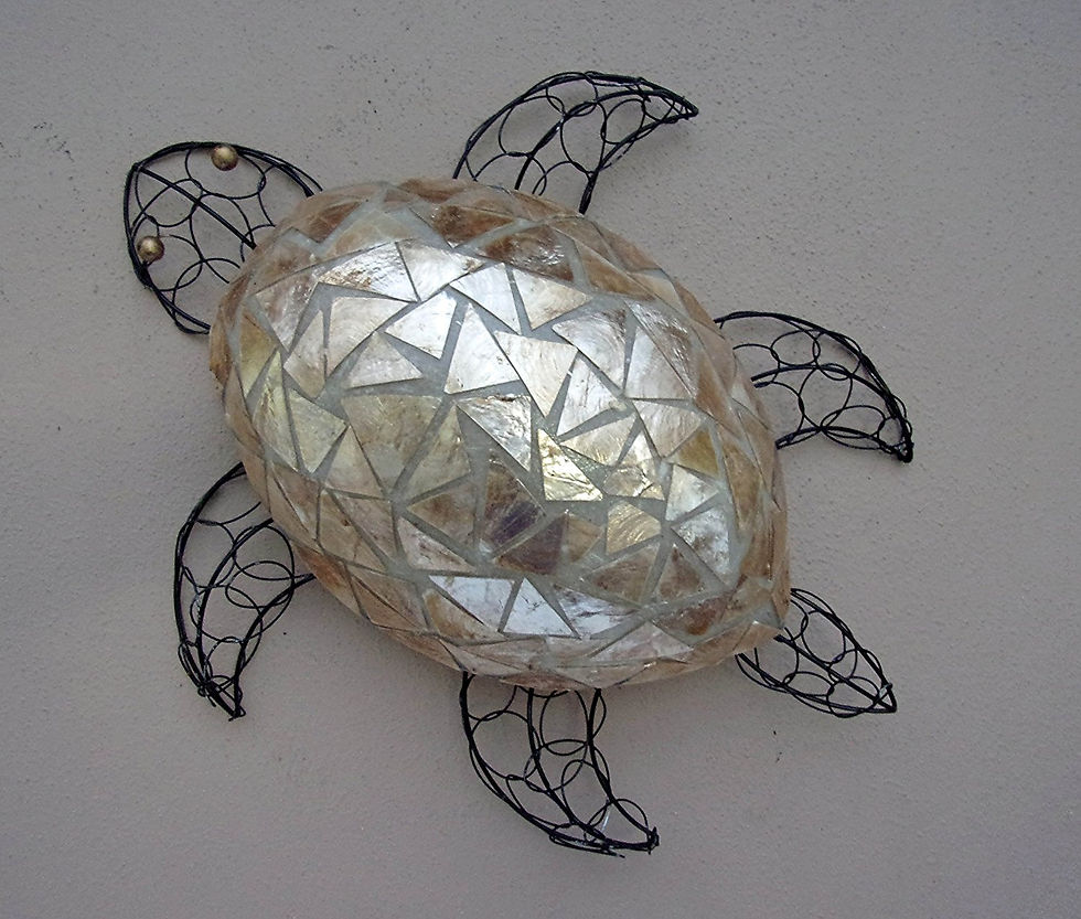 Unusual Gold Shell Turtle Wall Lamp Shade Hand Made Bali Shell Lamp Shade